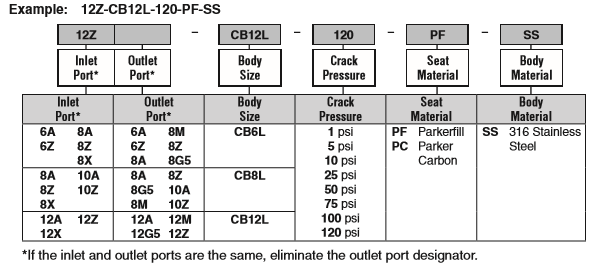 PARKER单向阀相关产品型号: