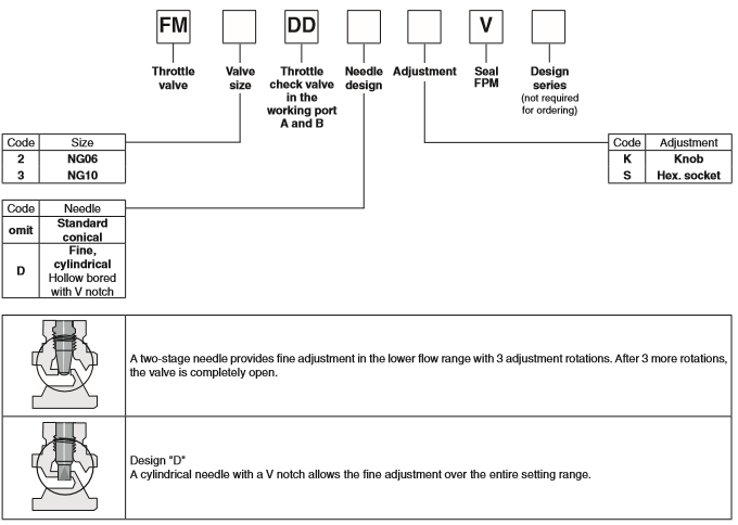PARKER流量控制阀FM系列是采用夹层设计,节流阀和单向阀设在端口A和B,FM2和FM3可以用作节流或通过改变安装位置节流节流阀。两种类型的计量针的设计可在订货FM2和FM3阀来实现,以适应应用程序所需的油门特性时。