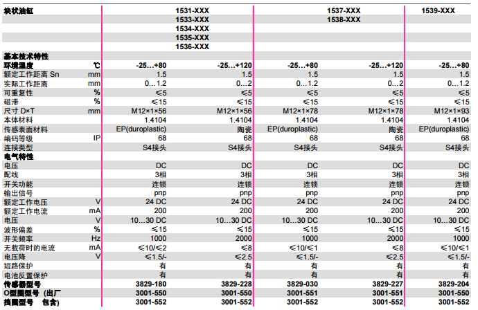 产品选型及参数: